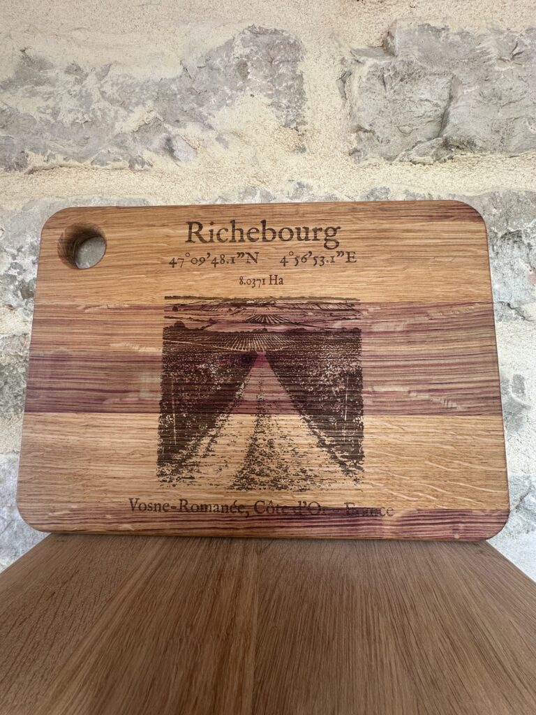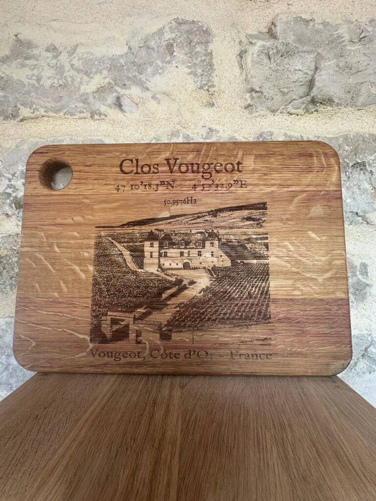 D’une taille généreuse (38x27cm), chaque planche est fabriquée, gravée et huilée avec soin, ici, en plein coeur du vignoble de Nuits-Saint-Georges.