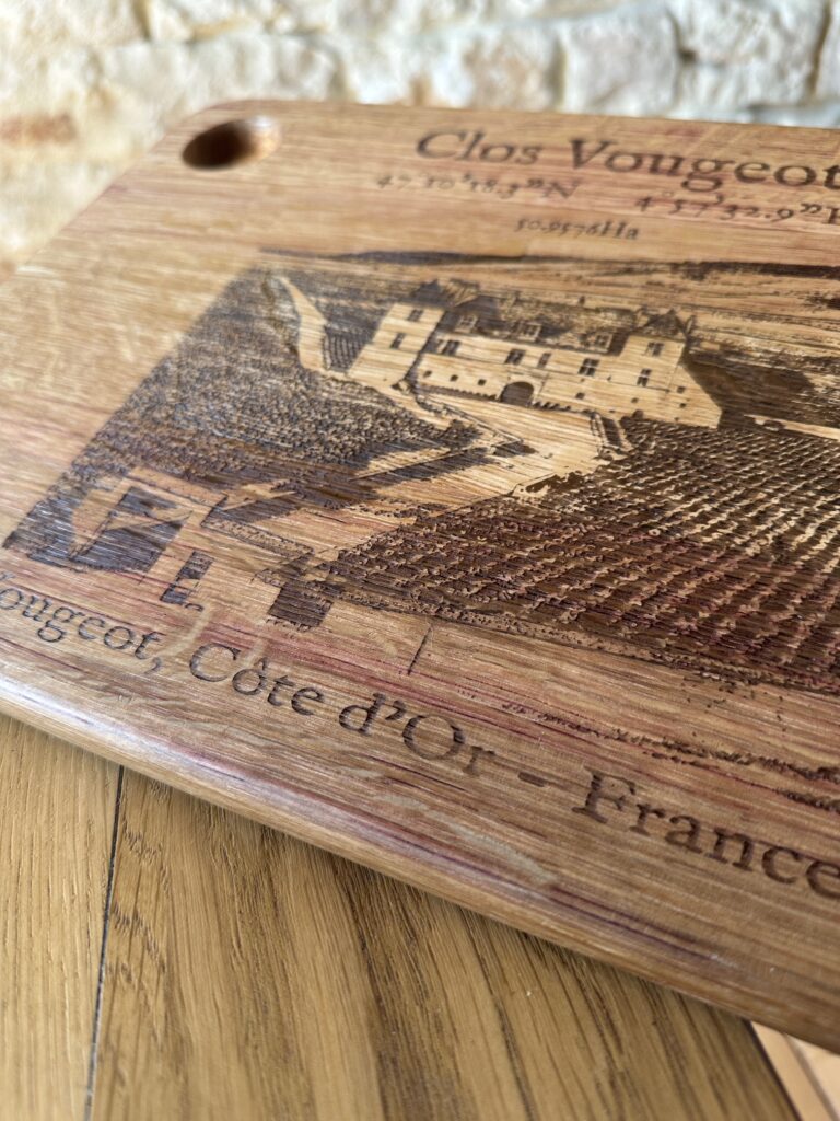 Planche entièrement fabriquée à partir de fûts en chêne, laissant volontairement visible les traces du passé et donc du pinot noir ! Chaque planche met à l’honneur les Grands Crus emblématiques de la Côte de Nuits & de Beaune. 6 nouveaux visuels disponibles chaque trimestre.
